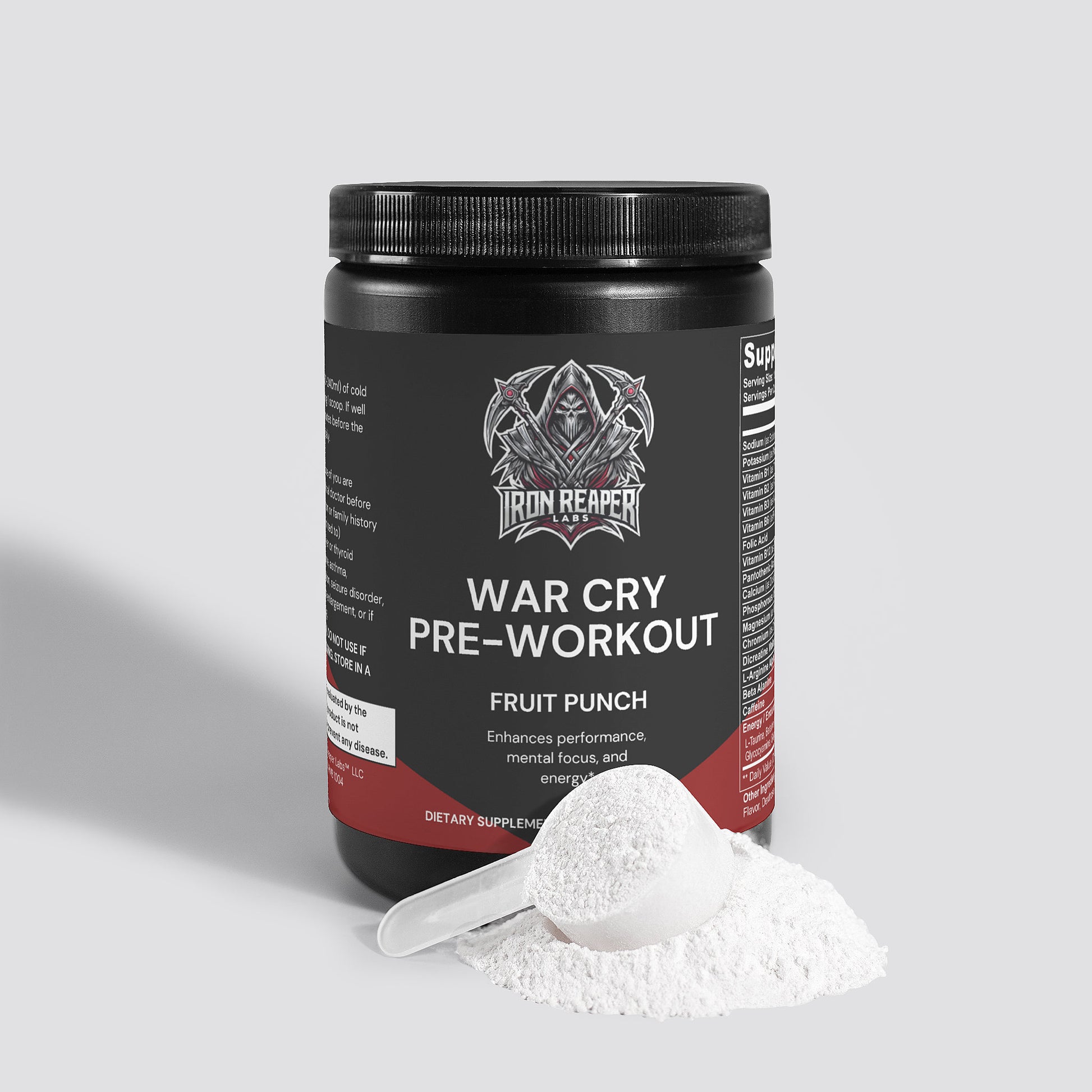 War Cry is more than just a pre-workout—it’s a statement. It’s designed for warriors who demand strength, endurance, and focus. With 23 powerful ingredients, including Beta-Alanine, L-Arginine AKG, and a B-Vitamin Complex, War Cry delivers explosive energy, improved performance, and complete transparency in every scoop.